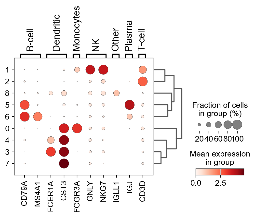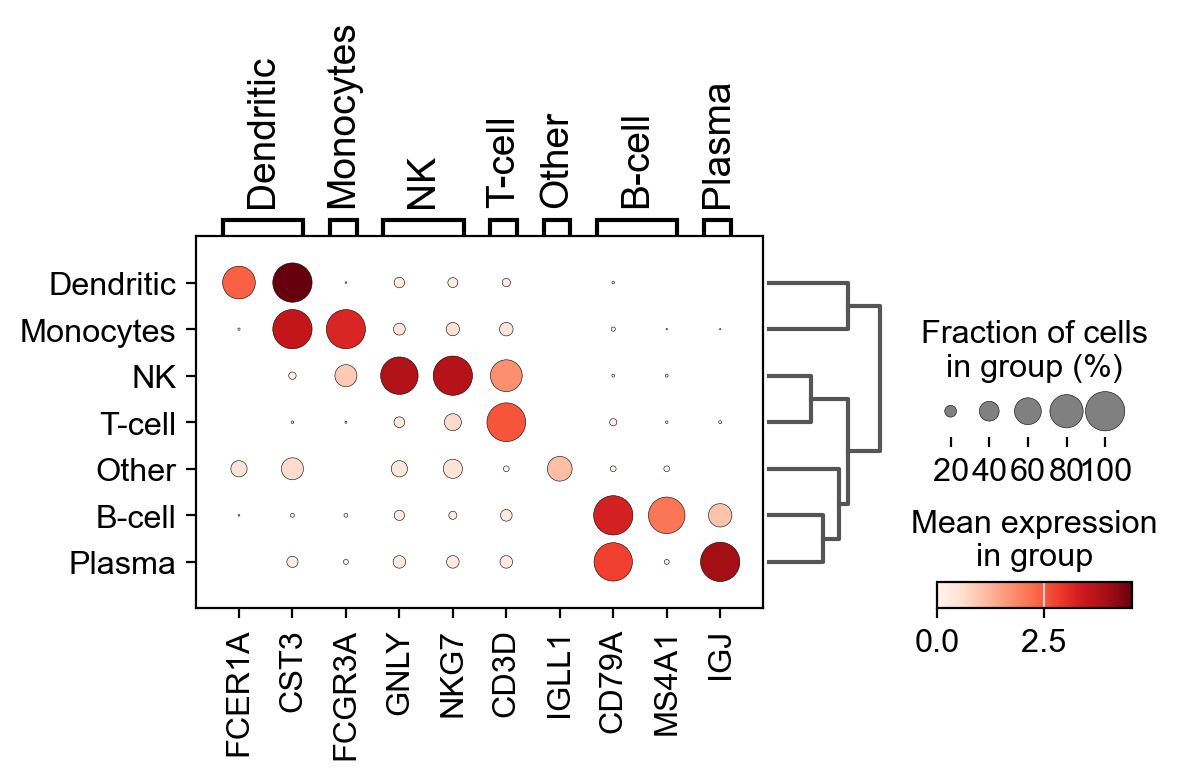 pbmc, marker_genes_dict, groupby="bulk_labels", ax=ax1, show=False