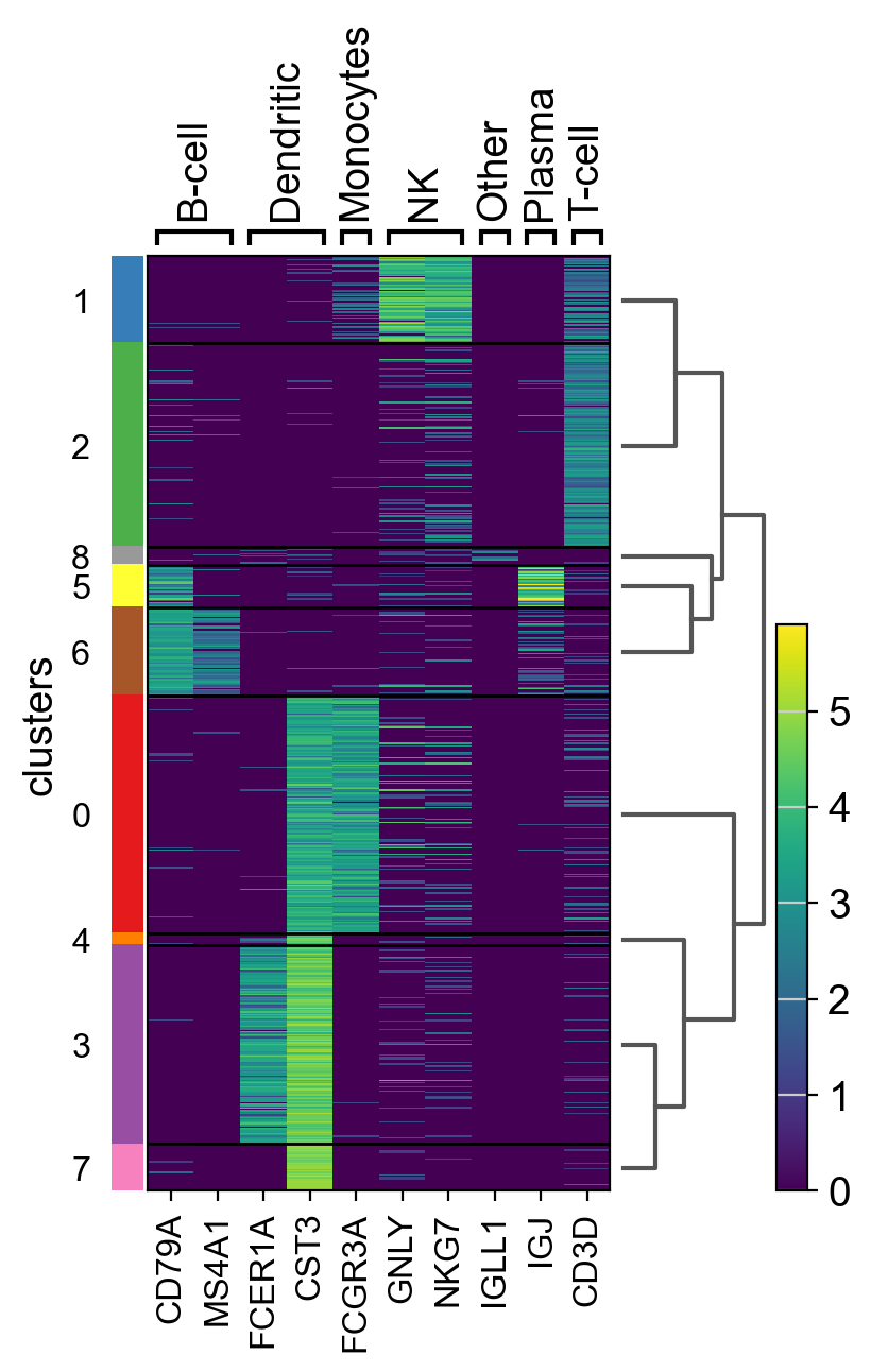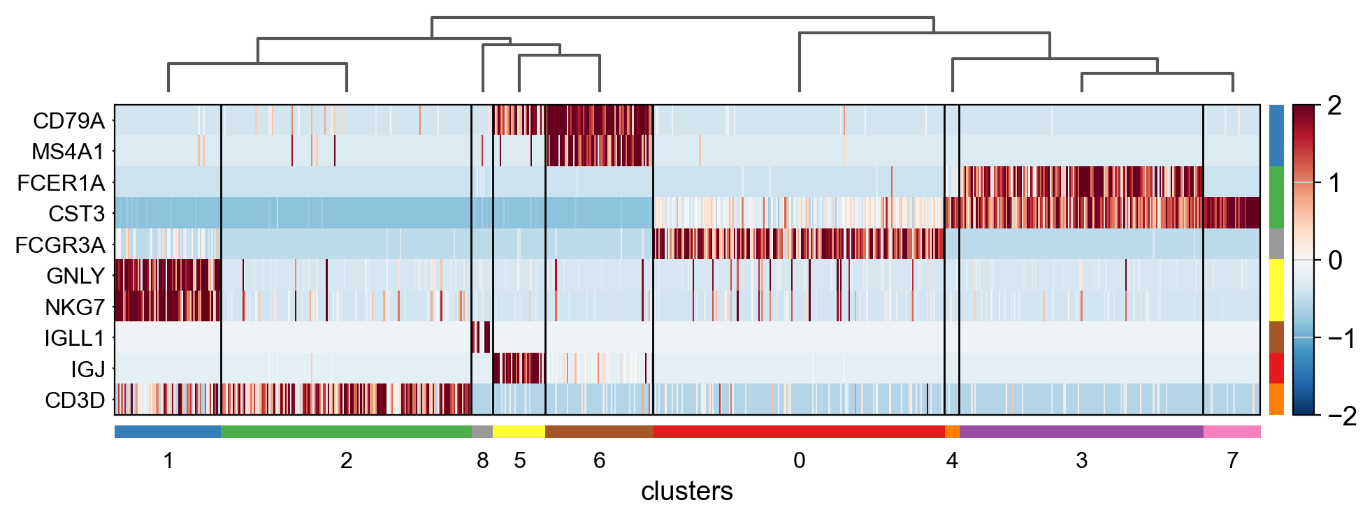 sc.tl.rank_genes_groups(pbmc, groupby="clusters", method="wilcoxon")
