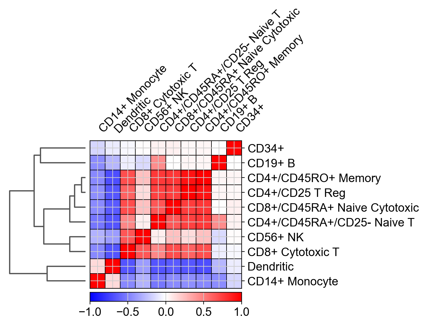Together with the dendrogram it is possible to plot the correlation (by default ‘pearson’) of the categories.