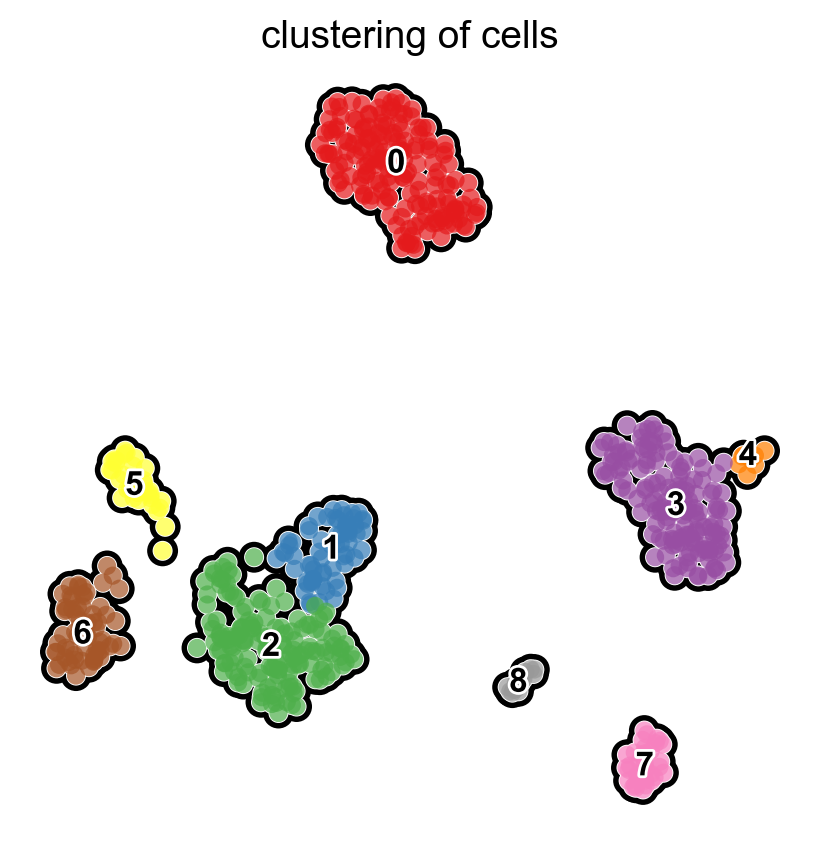 ). The groupby information can be added and is shown using the same color code found for sc.pl.umap