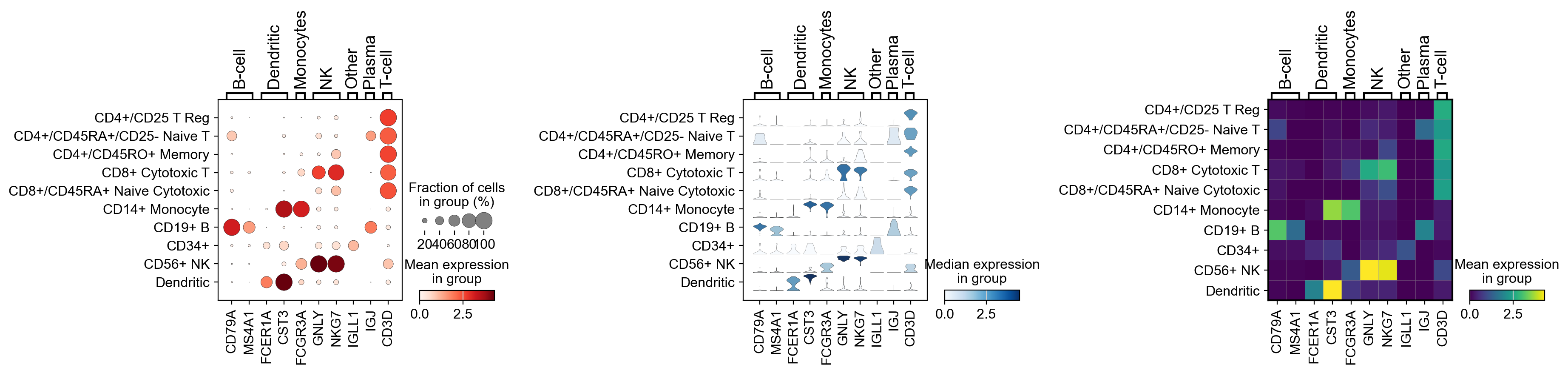 pbmc, marker_genes_dict, groupby="bulk_labels", ax=ax3, show=False, cmap="viridis"